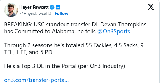 While the Bulldogs were in the mix for USC defensive lineman Devan Thompkins, he ultimately chose to head to Alabama instead.